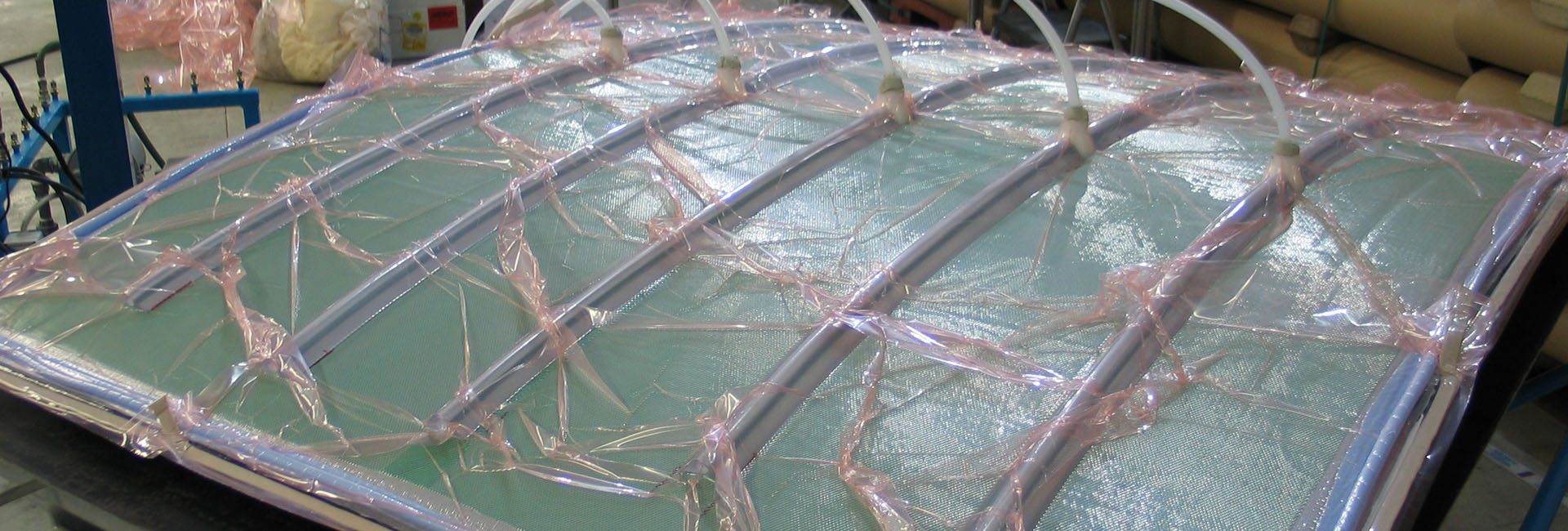 Spiral tubing for resin feed lines and vacuum manifolds around part edge. Can be easily cut and connected with range of coupling, elbow and T fittings.